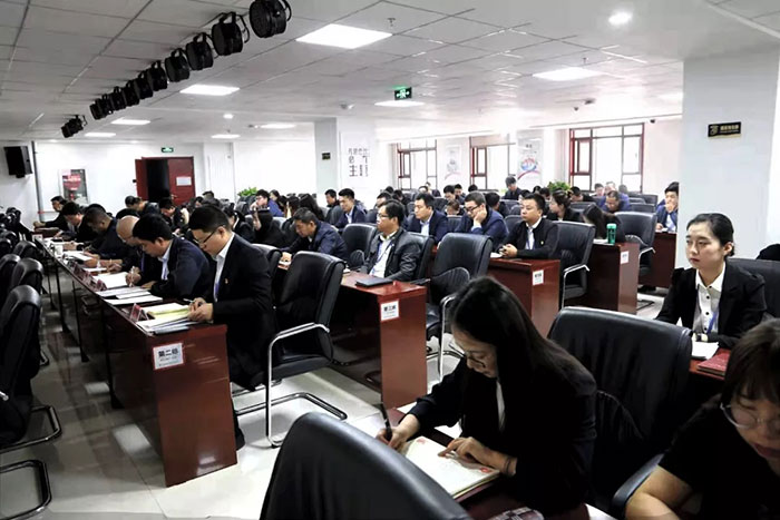 兰州新区主题教育第五巡回指导组到会指导,公司党委班子成员、全体党员及职工代表共计百余人加入集会。
