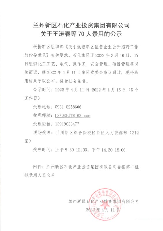 k8凯发天生赢家一触即发关于王涛春等70人录用的公示