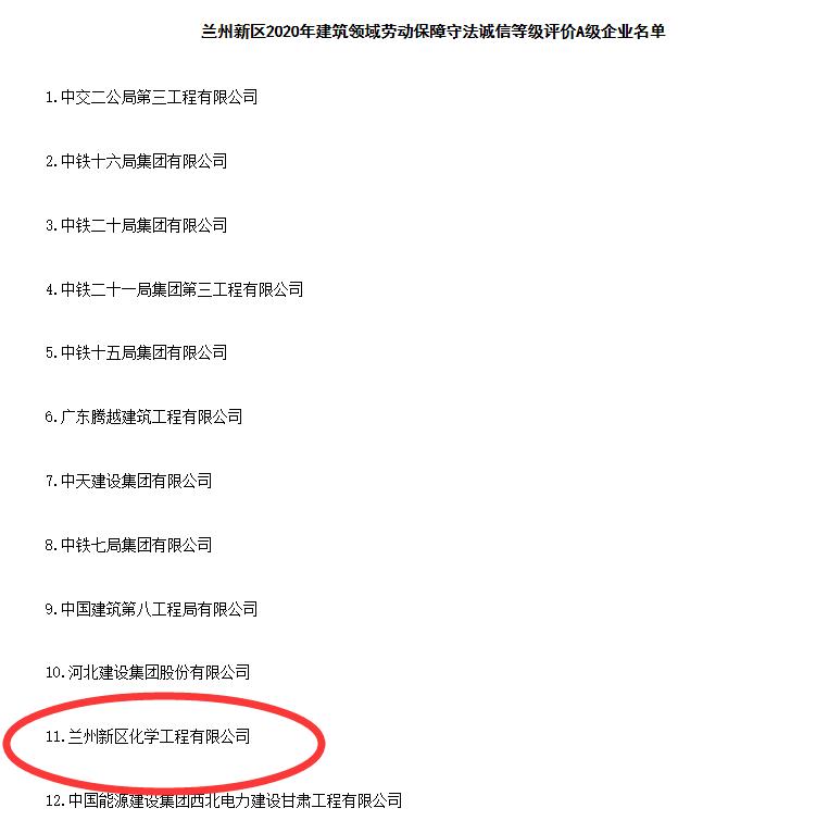 ½üÈÕ£¬´ÓÀ¼ÖÝÐÂÇøÃñÕþ˾·¨ºÍÉç»á°ü¹Ü¾Ö»ñϤ£¬À¼ÖÝÐÂÇø»¯Ñ§¹¤³ÌÓÐÏÞ¹«Ë¾±»È϶¨ÎªÀ¼ÖÝÐÂÇø2020Ä꽨ÖþÁìÓòÀͶ¯°ü¹ÜÊØ·¨³ÏÐÅÆ·¼¶ÆÀ¼ÛA¼¶ÆóÒµ£¬³ÉΪÀ¼ÖÝÐÂÇøÎ¨Ò»Ò»¼Ò»ñµÃ´ËÈÙÓþµÄÐÂÇø¹úÓÐÆóÒµ¡£