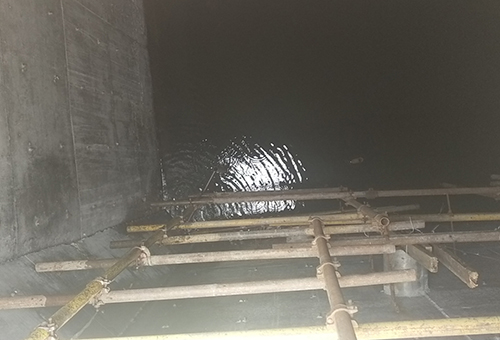 闭水试验是池体施工质量总体检验的须要环节之一。为加速推进项目建设进度,石投集团博石环保有限公司与施工单位中铁二十一局积极相同,明确施工计划,确定实验日期,要求中铁二十一局严格凭据施工计划执行,并指定专人卖力,从管道施工、池底平整、脚手架拆除、废物清除、预埋管口及进出口的临时封堵、输水管道的敷设等环节层层把控,催促中铁二十一局做好闭水试验前的各项准备事情。在闭水实验历程中,博石环保公司要求中铁二十一局随时对池体进行外观检查,视察底板、池壁是否漏水,发明渗漏点要做好标记并实时处理解决。经过连续三天的连续视察和纪录后,若无渗漏才可逐步排水。