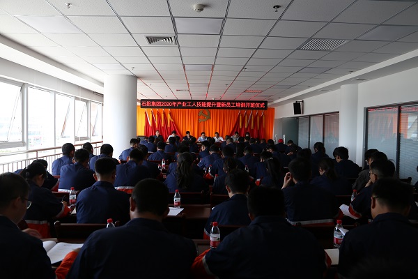 2020年8月10日上午,兰州新区石投集团举行2020年工业工人技术提升暨新员工培训开班仪式,新区党群事情部部长柴守强,集团公司副总经理姜锦,副总经理齐铁盾,副总经理高厚奇,秦川园区管委会委员、主任助理豆永良,新区党群事情部工会事情科科长狄生俊,工会事情科副科长郭凌冰出席开班仪式。