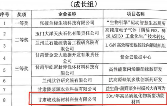 近日,从第十一届中国立异创业大赛(甘肃赛区)组委会获悉,兰州新区专精特新化工工业孵化基地的两家入驻企业——甘肃峻茂新质料科技有限公司和兰州昱重医药科技有限公司划分荣获第十一届中国立异创业大赛(甘肃赛区)优秀企业奖 。